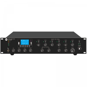 ◆采用國際標準2U氧化鋁質(zhì)拉絲面板工藝,帶3分區(qū)工業(yè)標準一體化接線端及接口,外殼采用金屬材料加強與地線的連接,保證具備可抗靜電的功能額定 ◆功率輸出:120W 240W350W500W ◆帶3組定壓分區(qū)輸出,分區(qū)獨立音量調(diào)節(jié),定壓定阻雙應用接口100V或70V和40hms-80hms-16 Ohms ◆面板帶2.5寸液晶彩屏MP3/FM/播放顯示,萬能節(jié)目源播放器USB/SD和SD接口,支持MP3,WAV WMA,節(jié)目源讀取播放具有Mic1(XLR)和Mic/Line輸入2-3(6.3mm插孔),4個線路,2個話筒輸入,一個電話輸出,一個線路輸出。Mic1VOX具有最高優(yōu)先級帶紅外遙控器,藍牙...