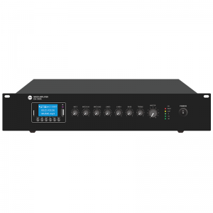 一款多音源功放一體機MP3,F(xiàn)M調(diào)諧器和藍牙的PA混頻器放大器,是用于公司,托兒所,商店,銀行清真寺,網(wǎng)吧,酒吧,教室,餐廳,主題樂園等場所BGM和語音使用的最經(jīng)濟可靠性價比最高理想選擇產(chǎn)品。 ◆ 一體化黑金色高檔鋁合金2U機箱設(shè)計,Mp3播放器,F(xiàn)M收音機和藍牙音頻放大器. ◆ 額定功率輸出:60W,3.輸出定阻定壓雙應用接口100V或70V和4Ohms-8 Ohms-16 Ohms. ◆ 面板帶2.5寸液晶彩屏MP3/FM/播放顯示,萬能節(jié)目源播放器USB/SD和SD接口,支持MP3,WAV WMA,節(jié)目源讀取播放. ◆ 具有Mic1(XLR)和Mic / Line輸入2-3(6.3mm插...