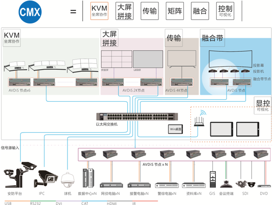 HOAVS分布式綜合系統(tǒng)融合了KVM坐席協(xié)作、可視化管理、影像切換、大屏拼接、遠(yuǎn)距離傳輸、音視頻矩陣、投影融合帶、環(huán)境量、控制管理等強(qiáng)大系統(tǒng)功能。在同樣的功能應(yīng)用場(chǎng)景下,標(biāo)準(zhǔn)化、數(shù)字化、網(wǎng)絡(luò)化、跨地域的HOAVS分布式綜合系統(tǒng)可為您的項(xiàng)目減少設(shè)備配置、去中心化設(shè)計(jì)、簡(jiǎn)化系統(tǒng)和線路、自由部署調(diào)度,無(wú)論是一個(gè)房間、一棟樓、一個(gè)園區(qū)或者N個(gè)省市級(jí),都可實(shí)現(xiàn)信號(hào)的隨時(shí)共享、分發(fā),打破地域限制,構(gòu)成高效率協(xié)作、提升決策能力,同時(shí)也獲得了顛覆性的用戶體驗(yàn)。