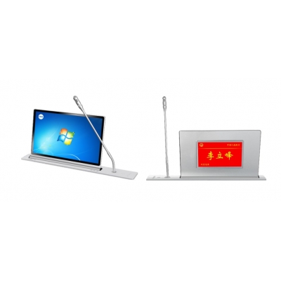 ● 外屏9英寸,可顯示與會者的姓名/職務(wù)/單位名稱/LOGO/會徽/會標等,背景可自定義聯(lián)網(wǎng)編輯,支持定時刷新;