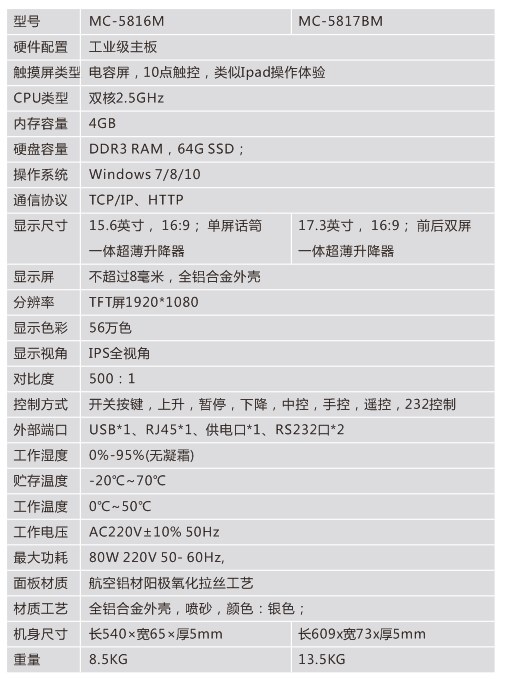 觸控發(fā)言一體機(15.6寸雙屏圓軸) MC-5816M / 觸控發(fā)言一體機(17.3雙屏圓軸) MC-5817BM