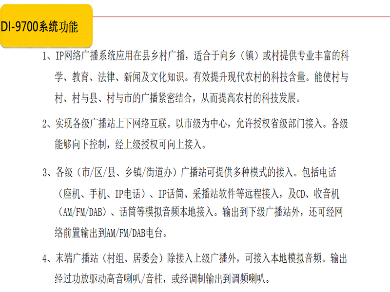 村村通IP網(wǎng)絡(luò)廣播系統(tǒng)DI-9700 系列