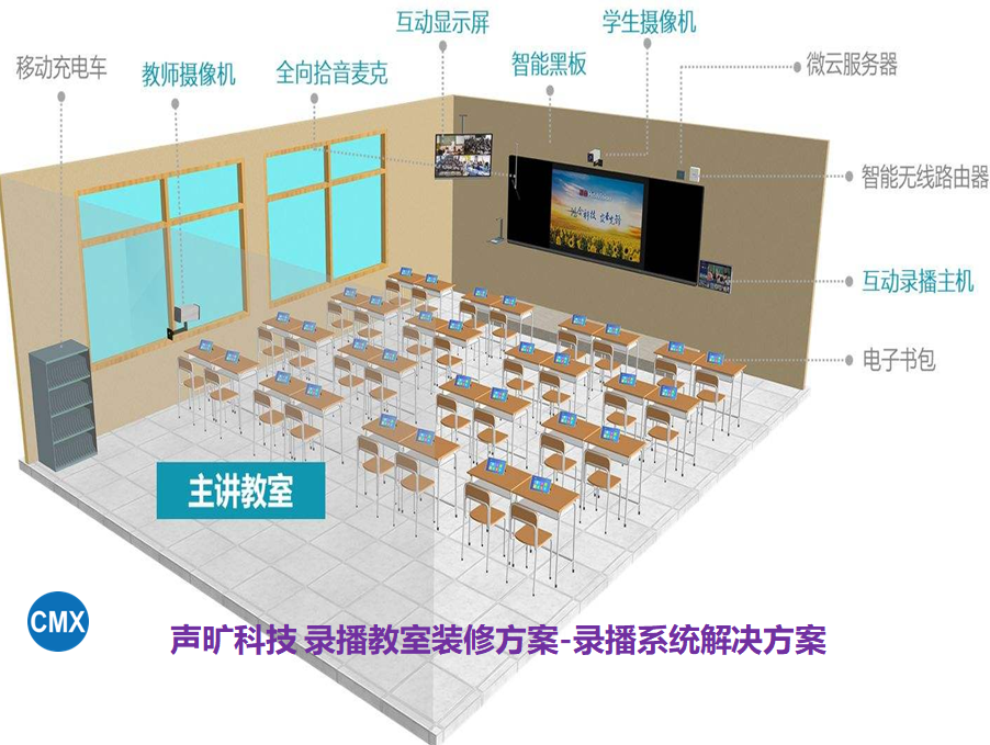 本次案例要裝修的錄播教室總面積為158平米,錄播教室長度為12.93米,寬為8.94.觀摩室長度為6.35米,寬度6.7米,高度2.8米。結(jié)合對該企業(yè)實(shí)地現(xiàn)場考察,出具詳細(xì)錄播教室裝修方案。具體裝修要求將原教室隔離為兩間教室,一間為錄播教室上課區(qū)域,一間為觀摩室。兩室墻體隔斷內(nèi)安裝吸音棉板,外層石膏板封面。隔斷中間觀摩墻采用1.2m*4m單向厚度為5毫米鋼化玻璃。教室頂部采用鋼龍骨吊架,礦棉板天棚吊頂,礦棉吸音板厚度為3~5毫米。錄播教室內(nèi)加裝雙層隔音窗,有效阻斷外界雜音干擾。隔音窗上方加裝窗簾盒,窗簾要求防靜電雙層隔音。墻體表面加裝木質(zhì)吸音板,以藍(lán)色或紅色為準(zhǔn)。地面鋪設(shè)防靜電地毯。講臺區(qū)域鋪設(shè)木地板。