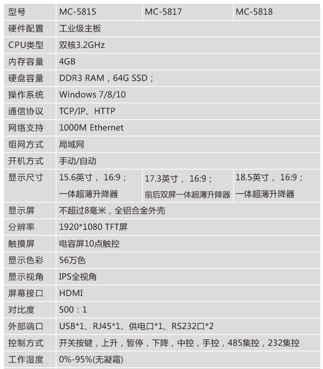 無(wú)紙化超薄觸控升降器(15.6寸單屏圓軸) MC-5815 / 無(wú)紙化超薄觸控升降器(17.3寸單屏圓軸) MC-5817 / 無(wú)紙化超薄觸控升降器(18.5寸單屏圓軸) MC-5818