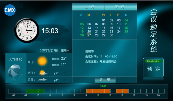 隨著社會(huì)的發(fā)展,會(huì)議預(yù)約管理系統(tǒng)在近年來(lái)呈現(xiàn)高速發(fā)展,但是各種等級(jí)層次不齊。現(xiàn)代辦公會(huì)議室是組織的公共資源,會(huì)議室及其附屬的設(shè)備構(gòu)成召開(kāi)會(huì)議的基礎(chǔ)環(huán)境。廣州朗歌公司以提高會(huì)議效率為焦點(diǎn),以會(huì)議全過(guò)程管理為理念,開(kāi)發(fā)了會(huì)議預(yù)定管理系統(tǒng)產(chǎn)品。會(huì)議室預(yù)約管理系統(tǒng)的目標(biāo)是為會(huì)議的準(zhǔn)備提供便捷的服務(wù),實(shí)時(shí)動(dòng)態(tài)的將會(huì)議室預(yù)定信息,傳遞到每個(gè)會(huì)議室門(mén)口、大廳及樓梯口等公共通道的顯示屏上,實(shí)現(xiàn)會(huì)議信息發(fā)布引導(dǎo)功能為會(huì)議的召開(kāi)提供順暢環(huán)境。