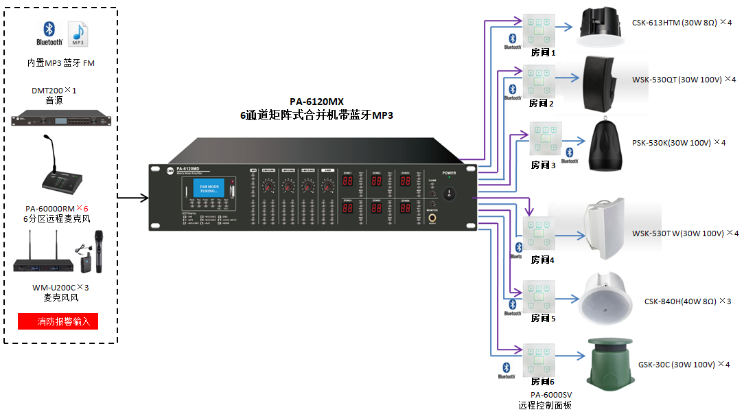 酒店背景音樂系統(tǒng)PA-6120MX 系統(tǒng)