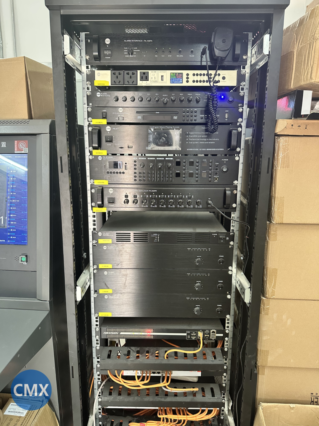 在番禺巨獸中心的機房內(nèi),安裝了一整套用于背景音樂播放的主機、功放等設(shè)備,這些設(shè)備共同構(gòu)成了背景音樂系統(tǒng)的核心部分,確保了整個中心區(qū)域能夠享受到高質(zhì)量、穩(wěn)定的音樂播放服務(wù)。