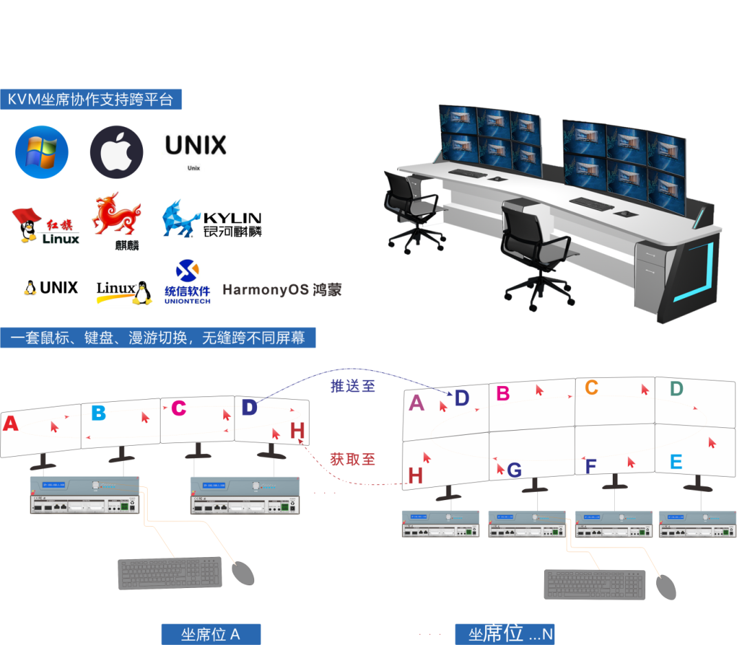 物理隔離,遠(yuǎn)程KVM坐席功能且跨平臺,滿足用戶異地協(xié)同管理