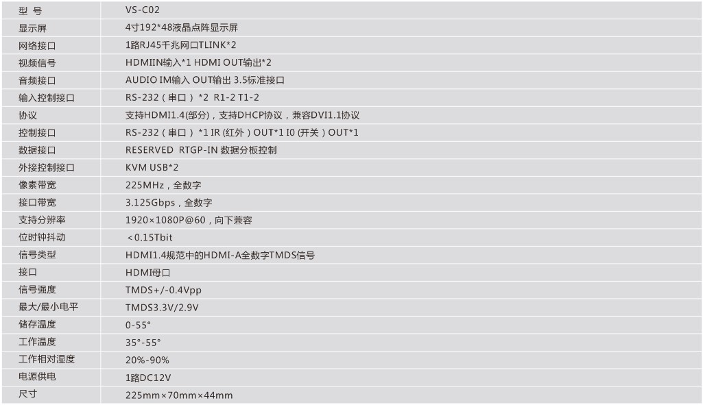 ● 界面預覽可視化,像素帶寬:225MHz,全數字;接口帶寬:3.125Gbps,全數字;支持分辨率:1920X1080P@60,向下兼容;音頻信號與視頻信號,感知與反饋信