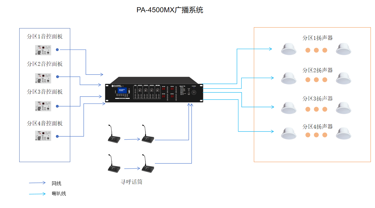 1.支持4個遠程尋呼站,實現(xiàn)滿足遠距離分區(qū)喊話需求