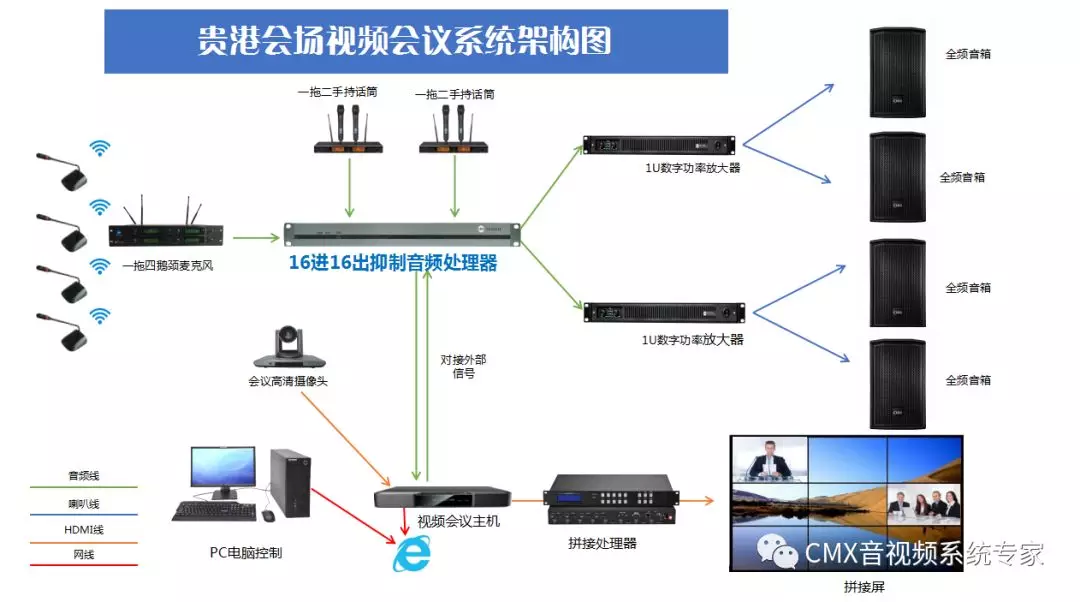 廣西貴港水文水資源局作為政府機構(gòu),需要經(jīng)常通過開會來討論各種指定計劃,因此需要在現(xiàn)有的條件下升級會議室功能來提高會議效率。因此,水文水資源局領(lǐng)導(dǎo)力求建設(shè)一套全新的音視頻會議系統(tǒng)來改善傳統(tǒng)會議中的問題。CMX為此設(shè)計了一套精品會議擴聲系統(tǒng)來滿足項目建設(shè)需求。