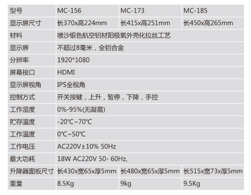 無紙化超薄觸控升降器(15.6寸單屏圓軸) MC-5815 / 無紙化超薄觸控升降器(17.3寸單屏圓軸) MC-5817 / 無紙化超薄觸控升降器(18.5寸單屏圓軸) MC-5818